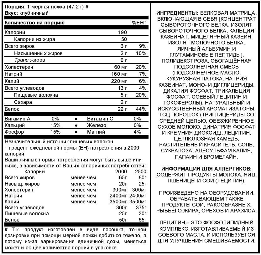 СИНТА-6 – это протеиновый продукт с 22 г белка самого высокого качества на порцию и самый вкуснейший продукт данной категории на современном рынке. СИНТА-6 включает в себя не только незаменимые аминокислоты и ценнейшие жирные кислоты, но также является превосходным источником клетчатки, что делает его питательной и многофункциональной белковой добавкой. СИНТА-6 разработан таким образом, что подходит при любых физических нагрузках, при любых диетических программах и при любом образе жизни.